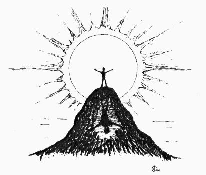 A man can stand on a mountain...by Cassandra Solon-Parry illustration by Ash Leaf A man can stand on a mountain A man can sit on a chair A man can cry from a mountain A man sits on a chair And a mountain jars A mountain can jar With the flat A screech A high-frequency wave On the taut line Of Forever But a man sits on a chair A man sits on a chair And a chair sits A chair sits On The floor But a mountain waves In the mind Of the man And shudders And resonates And is the floor! Man has made the chair The chair has been made By a man To balance To sit To perch Abrupt A dot Of a man At work On his chair Which sits On the floor Of the ceiling Of the office Underneath He sits on his chair That sits on the floor Of the ceiling Of the office Underneath That sits A pencil mark On the unending gradient Of forever That does not And shall not sit But rides On the backs Of mountains Where man At least Can stand. |