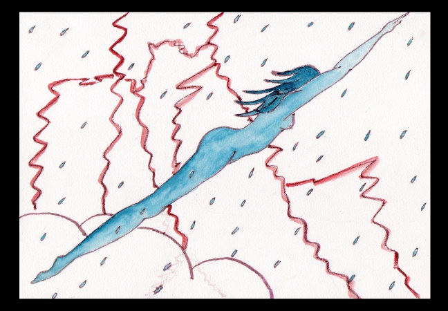 | Storm Dancer Storm dancer, Taut in the lightning flash,, Leaps in the moment of the thunder crash, Streaked by rain and the clouds' flame, In a windlash of motion flies again. From the shelter of a tree's boughs, I watched the cartwheel of your dance, Watched you tumble and soar, Straight as an arrow, supple as a willow lance In the wild downpour. Watched as you flew the chance of an angry sky, Your only music the winds cry, And turned the clouds fury into a song of dark laughter, Rain beguiled, storm child | ![]() |