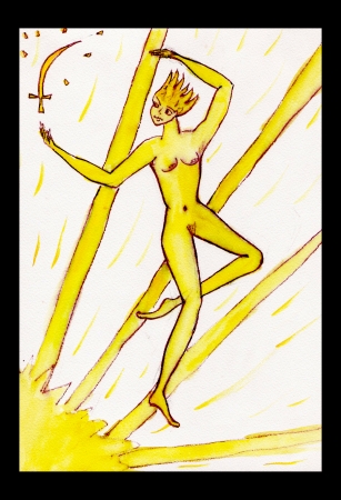 | Sun Dancer Illustrated by Angela White Sun dancer, sun dancer, Turn in the light, Flash with the bright blades You play with so easy, Nothing can harm you for you dance in the height, Far from the edge of all hard things, And the sun only brings you sunfire for the knives Which leap harmless in your hands and dazzle my eyes. Sun dancer, sun dancer, I watch the flames of your will, As you flickering turn, To a music of motion and still. | ![]() |