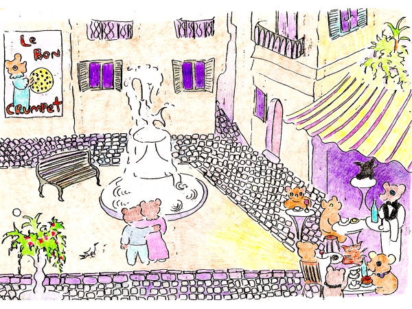 Lester Bear went to France where he sat in a square and ate croissants with hot chocolate. "This is the life," he thought happily.